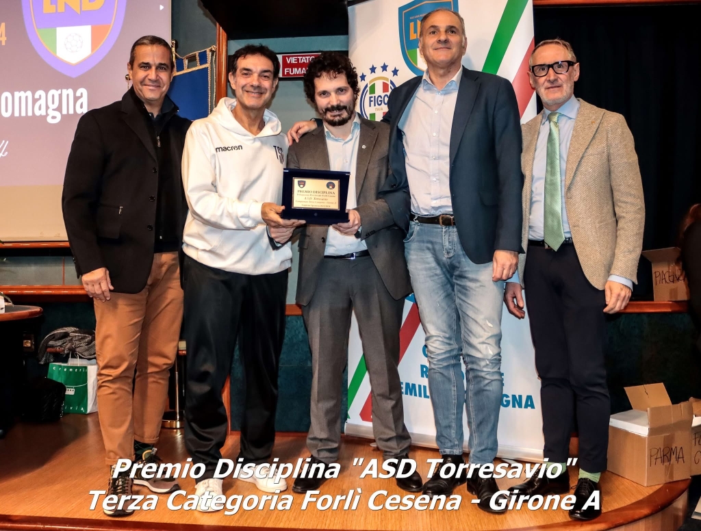 Nella serata di lunedì 16 dicembre, al Centro Congressi 7 Gold a Bologna, in occasione dell’assemblea ordinaria del Comitato Regionale Emilia-Romagna della FIGC, tre rappresentanti della società Torresavio hanno ricevuto i riconoscimenti per le Coppe Disciplina ottenute da tre formazioni amaranto nella stagione calcistica 2023-24.